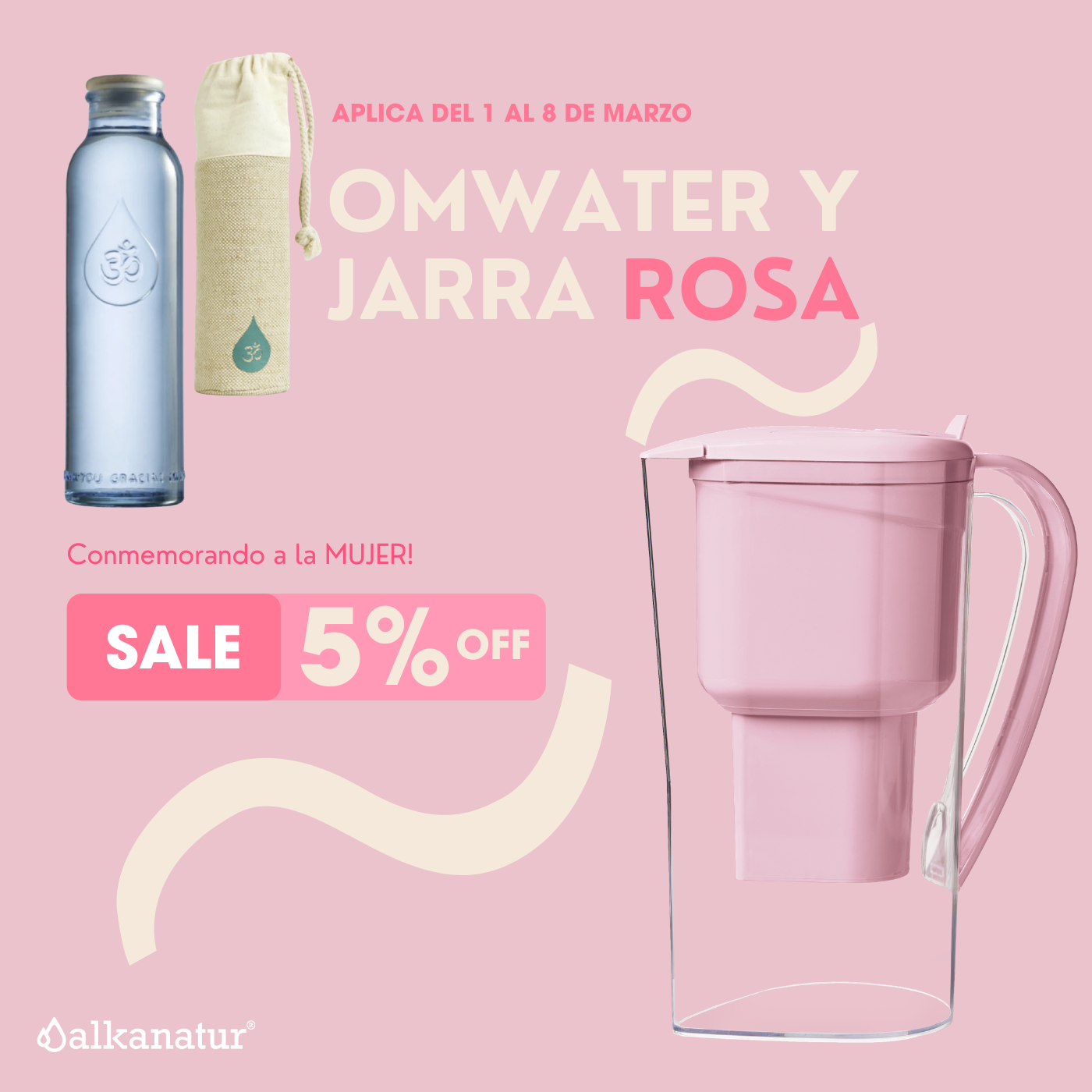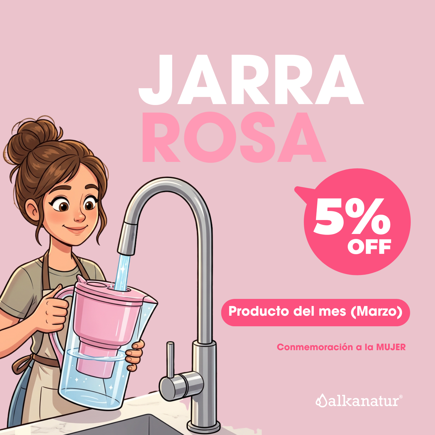 La Jarra Alkanatur, es un jarro de agua, cuyo filtro depura, ioniza, alcaliniza e hidrogena el agua de la llave entregando un pH entre 8.5 y 9.5. Además de entregarle antioxidantes con una biodisponibilidad de un 77,7%