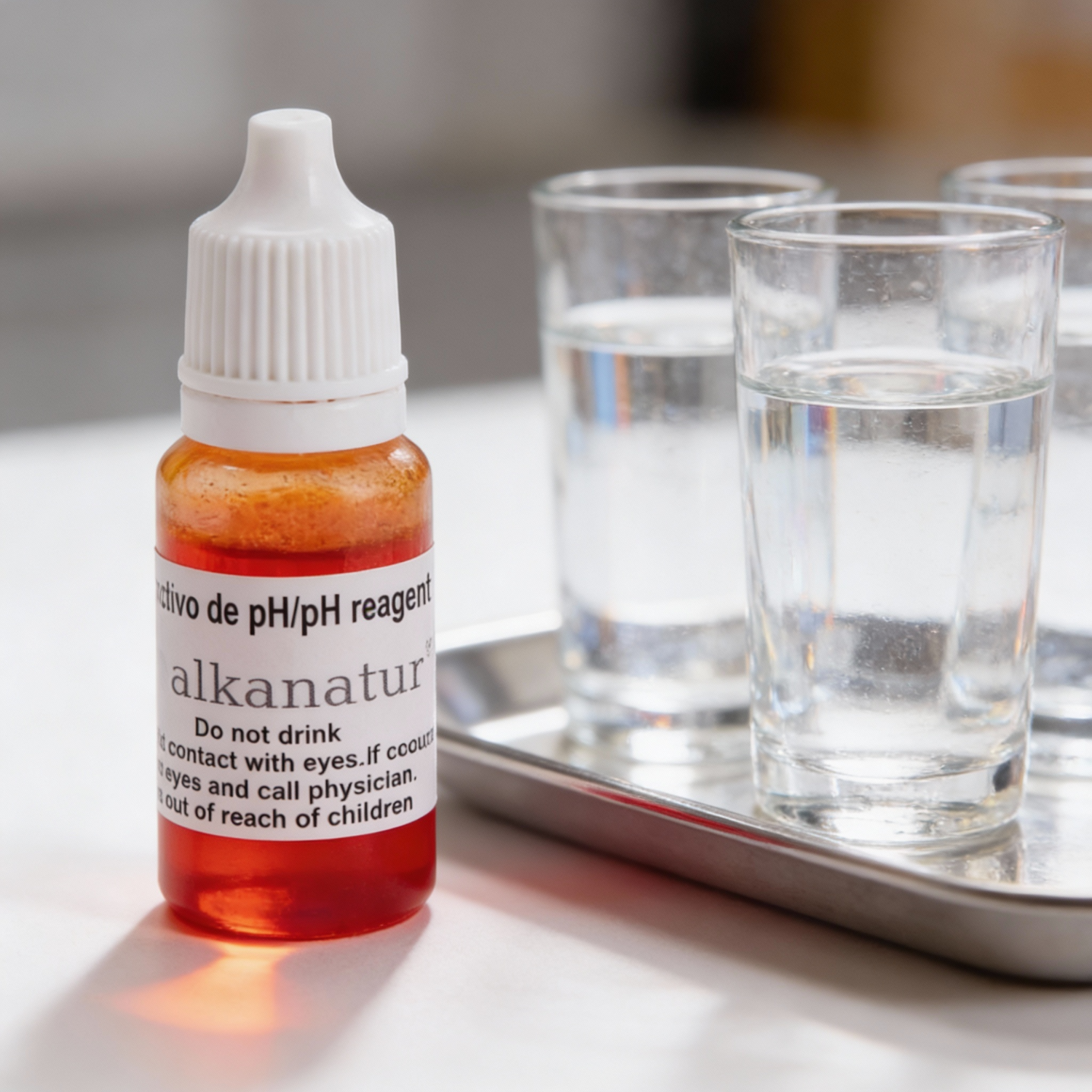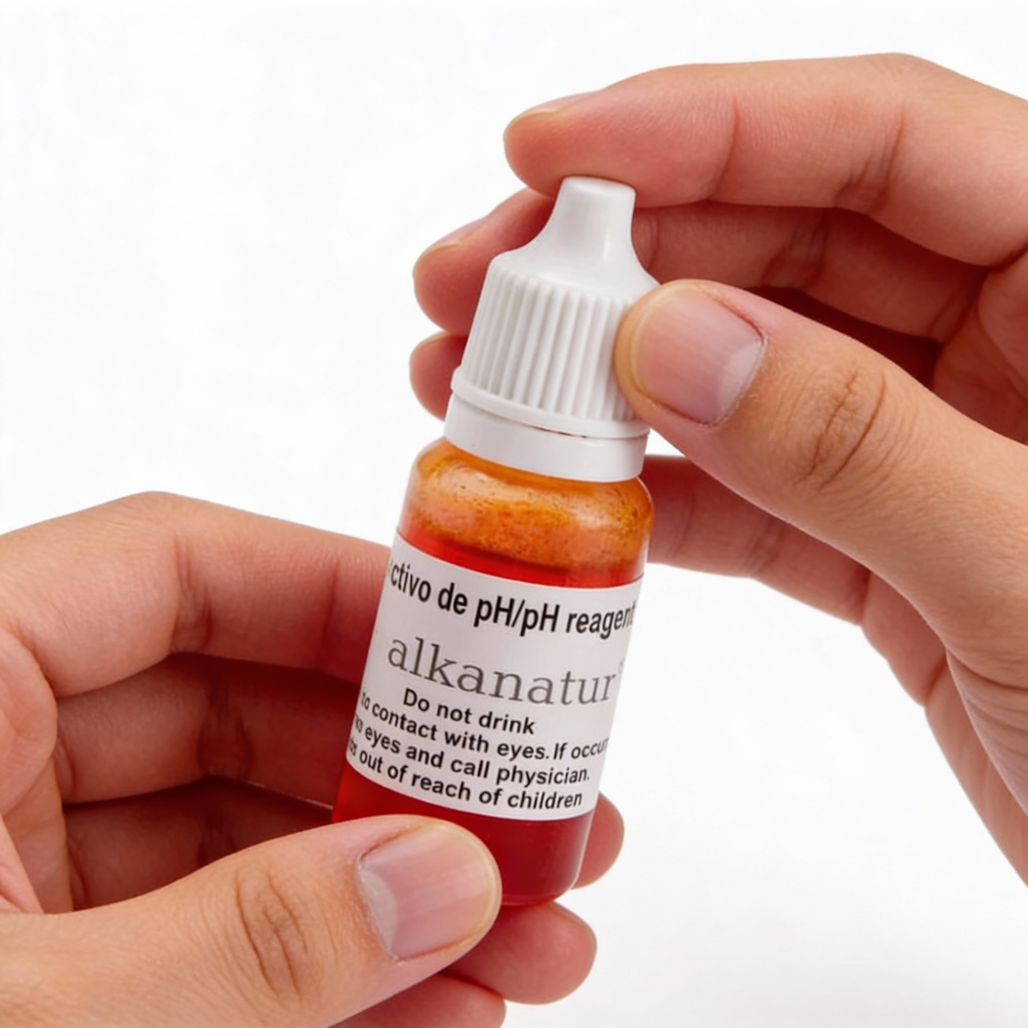 Identifica el pH de cualquier líquido de un modo seguro fácil y rápido. Solamente tienes que introducir 3 ó 4 gotas en unos 10ml del líquido a medir, al instante el color del reactivo cambiará. Compara el color con la escala graduada incluida en el libro de instrucciones podrás saber el pH de sus líquidos.