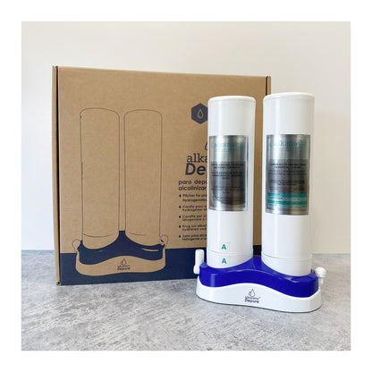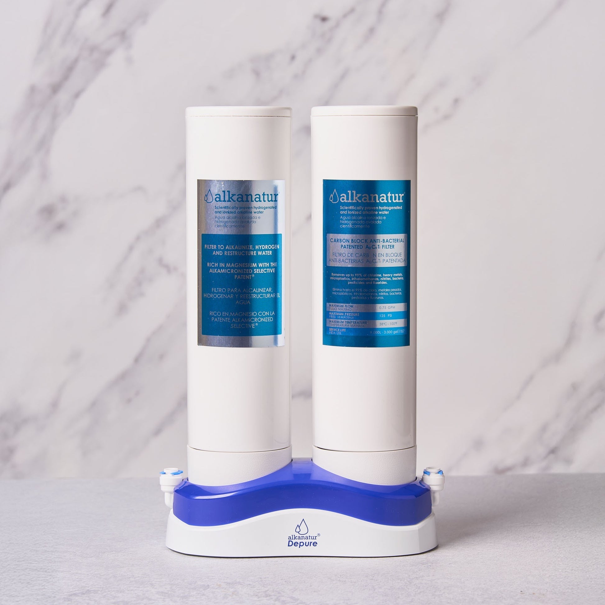 El sistema Depure es un aparato que, instalado en el lavaplatos, depura, hidrogena, alcaliniza e ioniza el agua de forma más rápida y con más capacidad que nuestra jarra.
